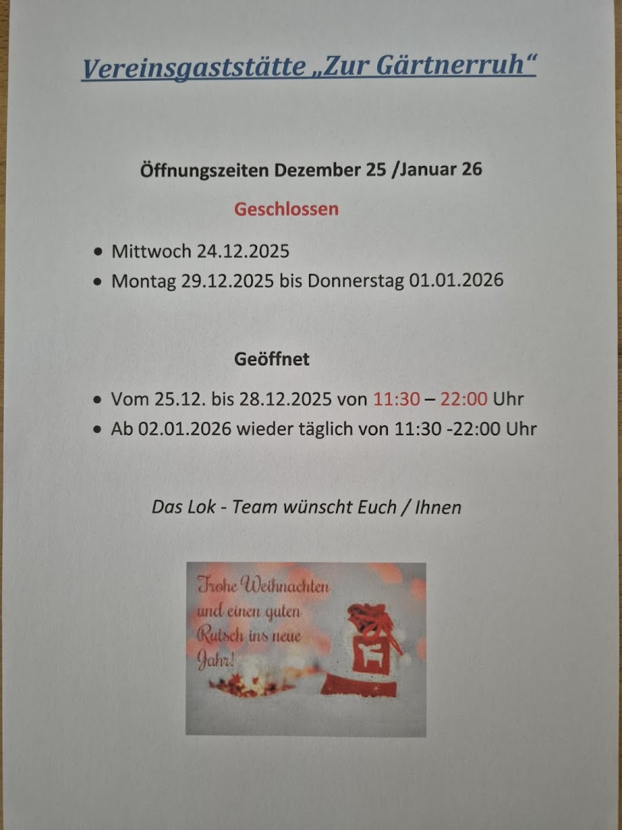 The restaurant is known for its excellent table service, ensuring that guests are well taken care of throughout their visit. From the warm welcome to the attentive staff, you can always count on a pleasant dining experience. Whether you're visiting for a quick bite or a relaxed evening with family and friends, the team at Vereinslokal 'zur Gärtnerruh' goes the extra mile to ensure that you feel right at home.